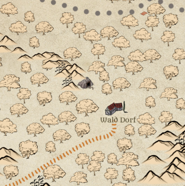 Die Charaktere landen völlig ausgeraubt in einem abgelegenen Walddorf. Sie werden geheilt und müssen die Heilung bezahlen, haben also Schulden beim Dorfschulzen. Sie sollen die Schulden abarbeiten und bekommen einen (geringen) Wochenlohn und freie Kost und Unterkunft.